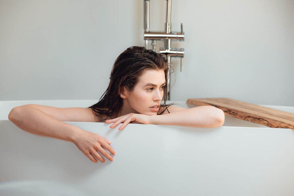 3. Потримайте кондиціонер близько 5 хвилин та змийте теплою водою обережно стискаючи волосся.